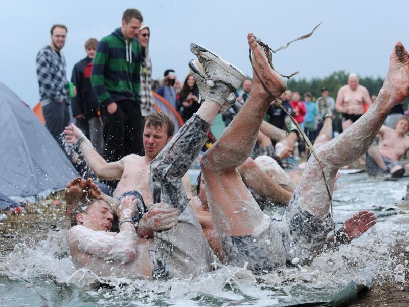 Diese Festivalbesucher in Scheeßel (2011) haben offenbar keine Angst vor Dreck und Schlamm. Foto: Julian Stratenschulte
