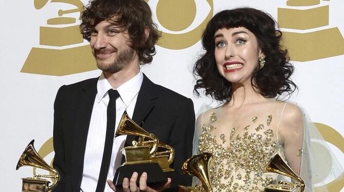 Gotye (L) mit Singer/Songwriter Kimbra bei den Grammys. Foto: Paul Buck
