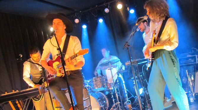 Schillernde Partymusik zwischen Barock und Science-Fiction: vorne Sänger Marco De Haunt (links mit Hut) und Gitarristin Steffi Narr. FOTO: MORAWITZKY