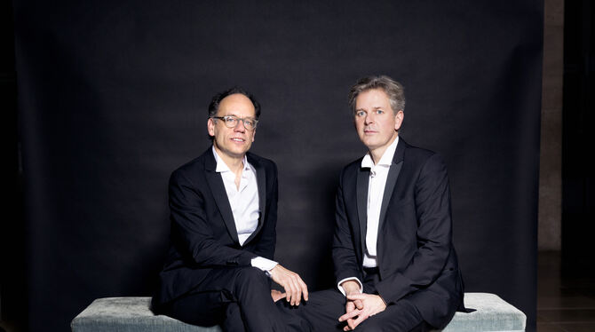 Sie sind für experimentelle Klänge zu begeistern, widmen sich aber gerne auch Klassik, Romantik – oder diesmal im Kammermusikzyklus im kleinen Saal der Stadthalle dem Impressionisten Claude Debussy: das Pianoduo Grau-Schumacher. FOTO: ACKERMANN