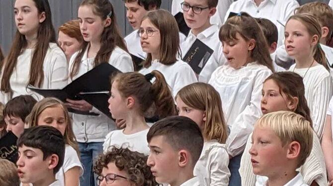 Der Reutlinger Mädchenchor und der Knabenchor Capella Vocalis sangen gemeinsam in der Zentrale der Kreissparkasse Reutlingen ein Frühlingskonzert. FOTO: VÖLKER