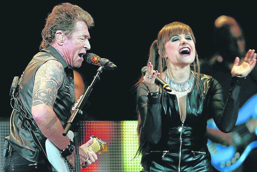 Peter Maffay, auf der Bühne engagiert wie immer, hier gemeinsam mit einer Backgroundsängerin beim Tourstart am 15. Januar in der O2-World in Hamburg. FOTO: DPA