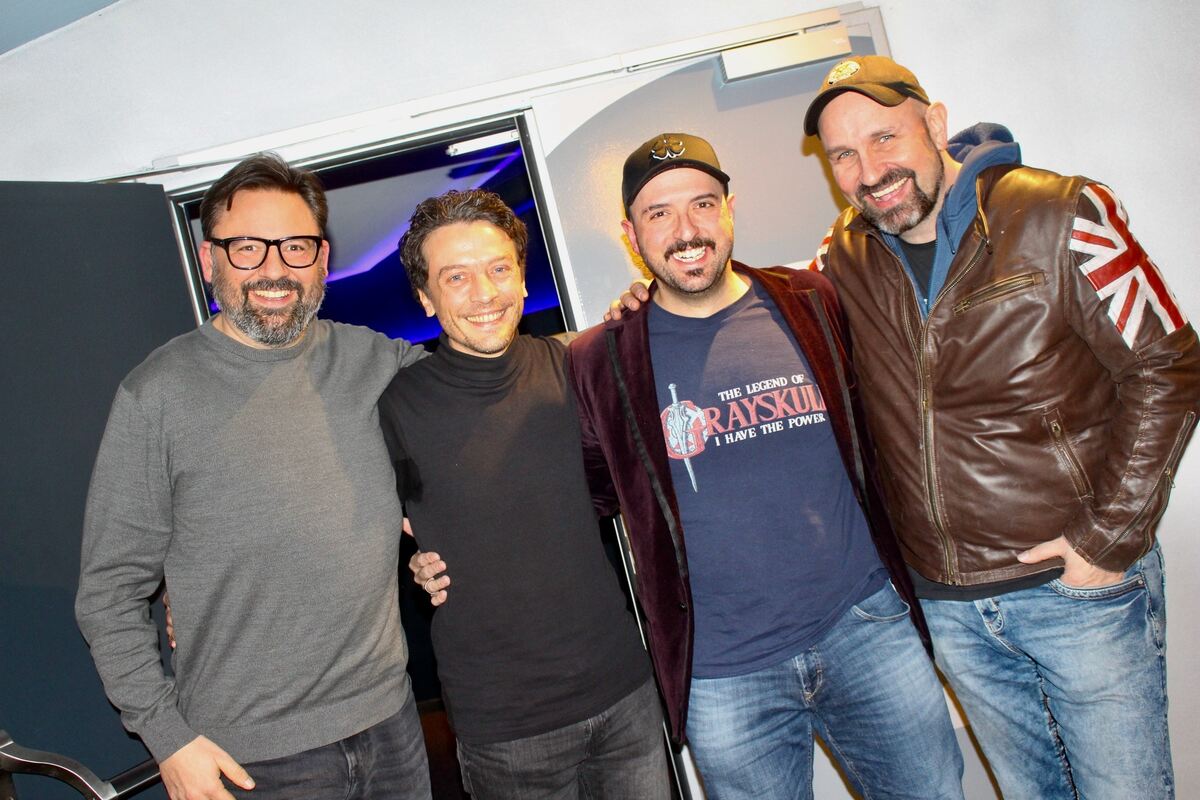 Regisseur Andreas Kröneck, Hauptdarsteller Harald Hauber, Musikproduzent Antonio Fernandes Lopes und Dominik Kuhn (von links) bei der Tübinger Vorpremiere im Kino Blaue Brücke.