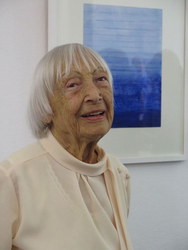 Doris Knapp 2017 vor ihrem Aquarell »Wasser« in der Pupille-Galerie. FOTO: KNAUER