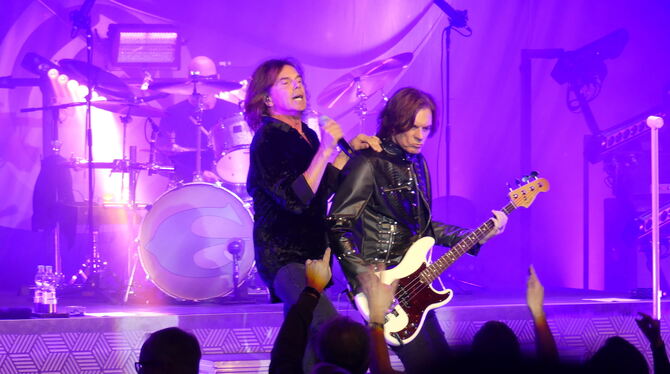 Sänger Joey Tempest und Bassist John Leven von Europe performen im Theaterhaus.