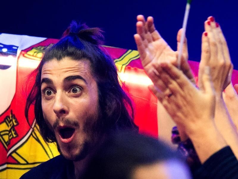 Der Porugiese Salvador Sobral kann sein Glück kaum fassen. Foto: Julian Stratenschulte