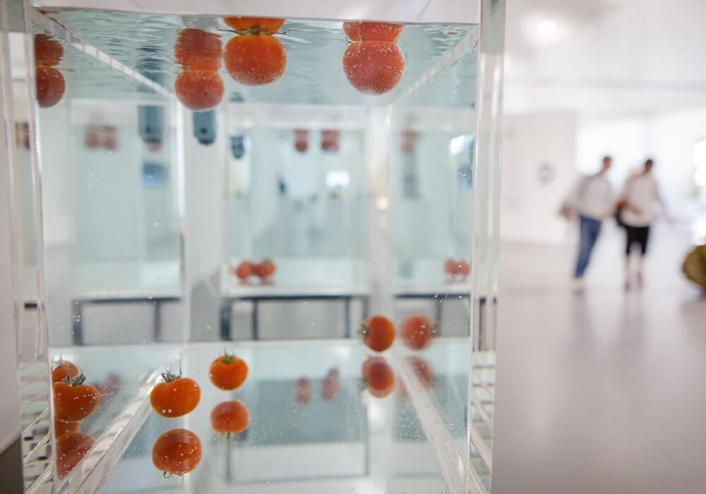 Tomaten schwimmen als Teil des Kunstwerks »Something that Floats/Something that sinks« des Künstlers Shimabuku bei der Triennale in Fellbach in einem Aquarium. FOTO: DPA