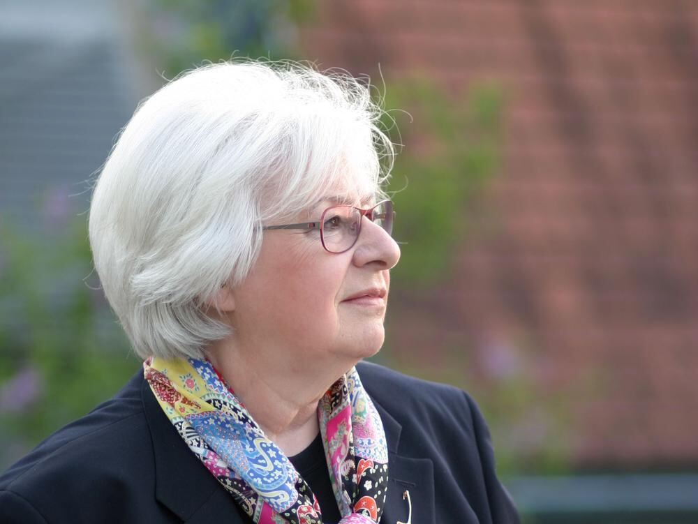 Sigrid Löffler vor der Lesung auf der Dachterrasse der Stadtbibliothek.