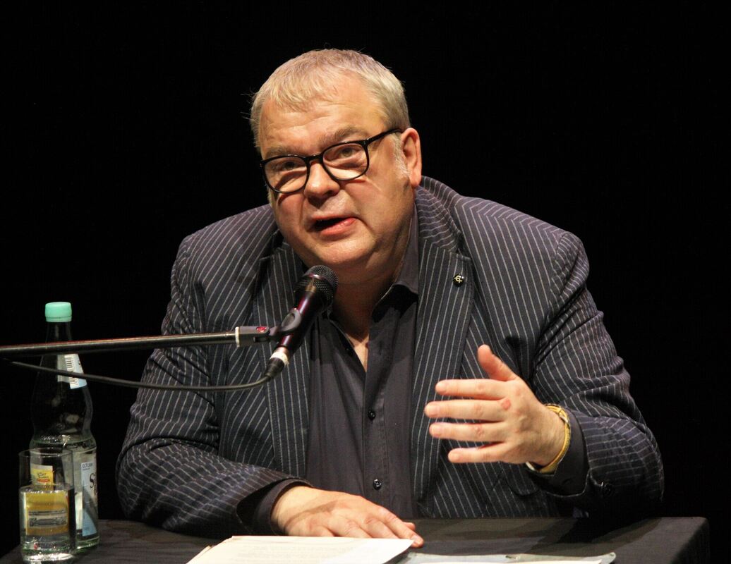 Der Satiriker, Gesellschaftskritiker, Alltagsbeobachter und Wortästhet Max Goldt ging im Landestheater Tübingen Phänomenen wie Witz, Humor und Lachen auf den Grund.