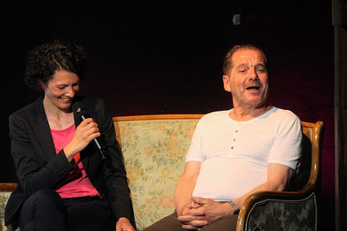 Simone Haug interviewte Theatermitgründer und Intendant Bernhard Hurm bei dessen Verabschiedung auf der Theater-Lindenhof-Bühne. FOTO: STRÖHLE