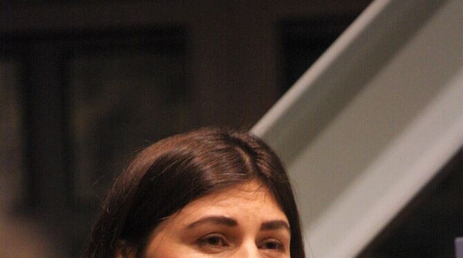 Tanja Maljartschuk bei ihrer Lesung in der Stadtbibliothek. FOTO: STRÖHLE