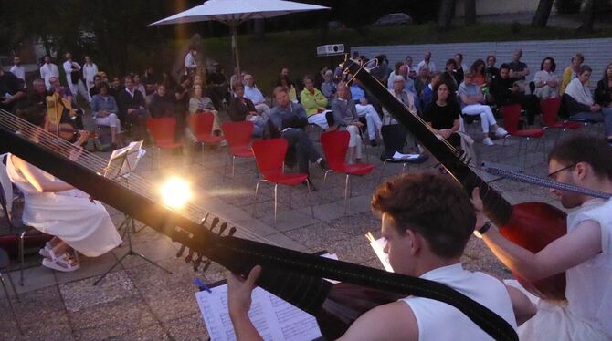 Die Gruppe Goldstaub spielte im Skulpturenhof der Tübinger Kunsthalle. FOTO: BERNKLAU