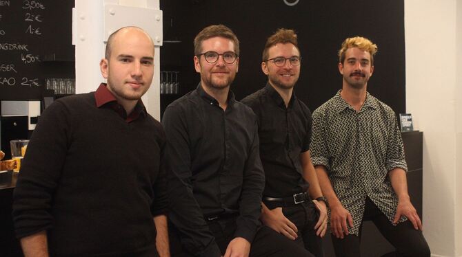 Zimmertheater-Dramaturg Ilja Mirsky, die Intendanten Dieter und Peer Ripberger und Regisseur Gregor Schuster (von links) bei der Spielplanvorstellung. FOTO: STRÖHLE