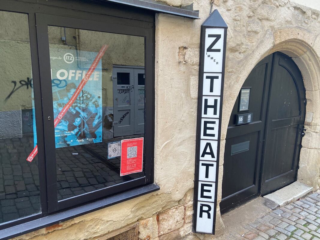 »ITZ in Danger! Von Schließung bedroht!«, steht weiß auf rot im Schaukasten des Tübinger Zimmertheaters in der Bursagasse.
