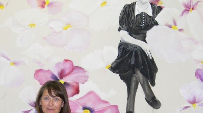 Malerei geht über in Gesticktes: Tanja Niederfeld vor ihrem Bild »Mimi«. FOTO: BÖHM