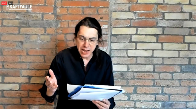 Autor Thomas Lang bei der Lesung in der Bar »Kraftpaule«. (SCREENSHOT)