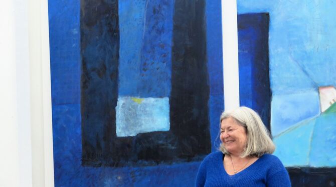 Gabriele Seeger Ton in Ton mit ihren Bildern in der Reutlinger Produzentengalerie Pupille.
