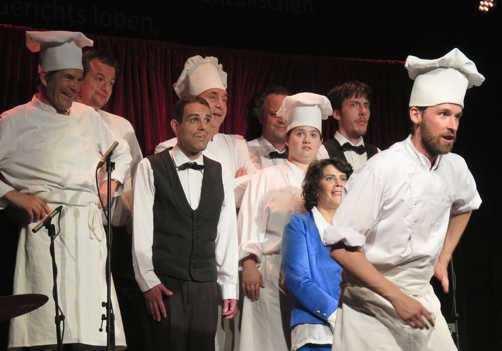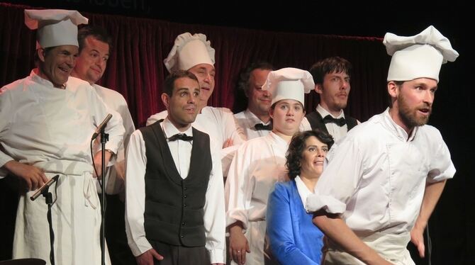 Chor der Köche und Kellner im franz.K.: Ensemblemitglieder des Théâtre du Cristal aus Erangy sur Oise bei Paris widmeten einen Abend der Kulinarik.