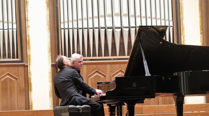 Andreas Grau (links) und Götz Schumacher bei einer ihrer Zugaben in der Tübinger Neuen Aula. FOTO: STRÖHLE