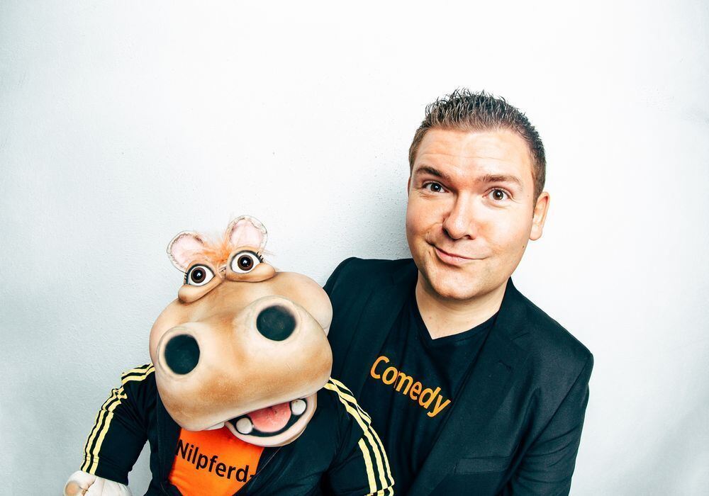 Komödiantisches Duo: Sebastian Reich und das Nilpferd Amanda. FOTO: ALEXEY TESTOV