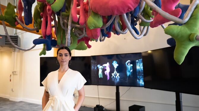 Bahar Gözmener in ihrer dreitägigen Videoinstallationsausstellung »The Bellybutton of the World« in der 518 Valencia Gallery in San Francisco.