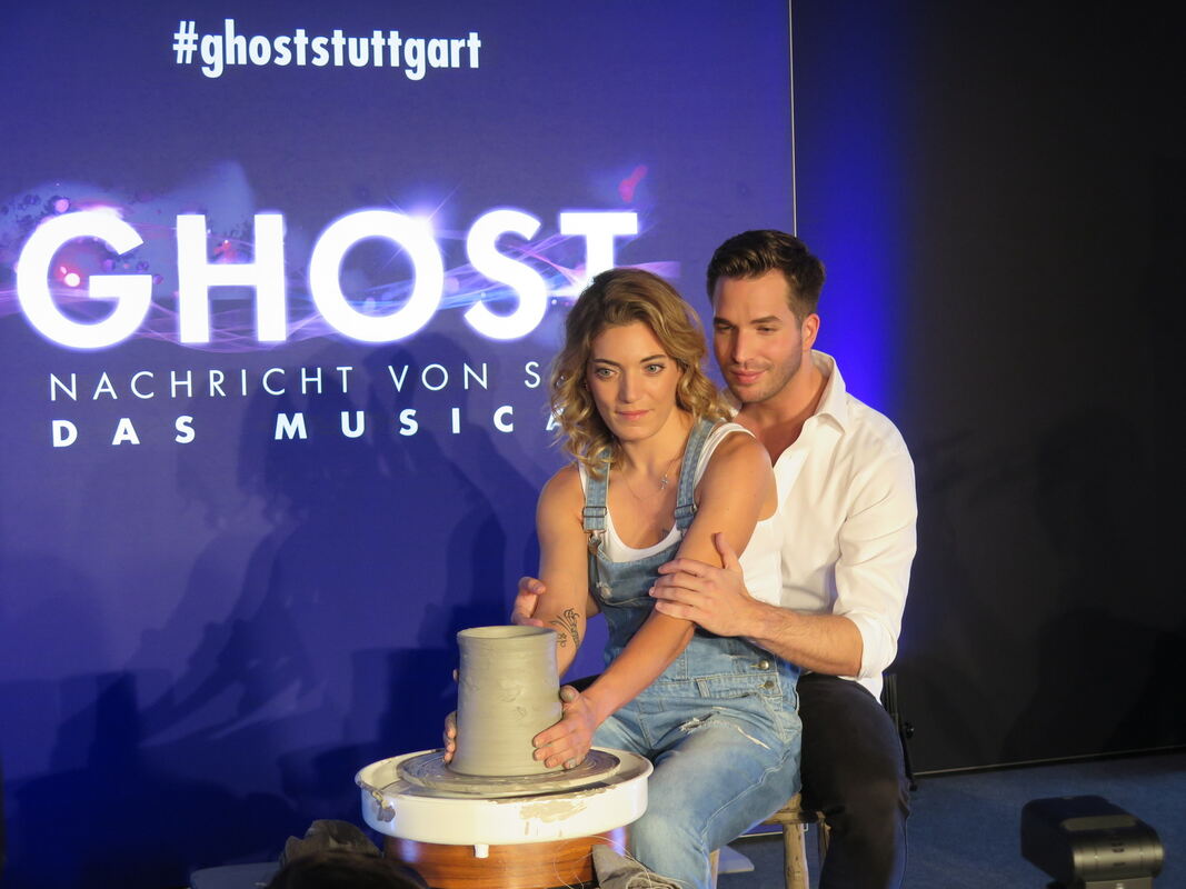 »Ghost – Nachricht von Sam« kommt als Musical nach Möhringen. Riccardo Greco ist Sam Wheat und Roberta Valentini Molly Jensen. Hier in der berühmtesten Szene.FOTO: KRAUTH