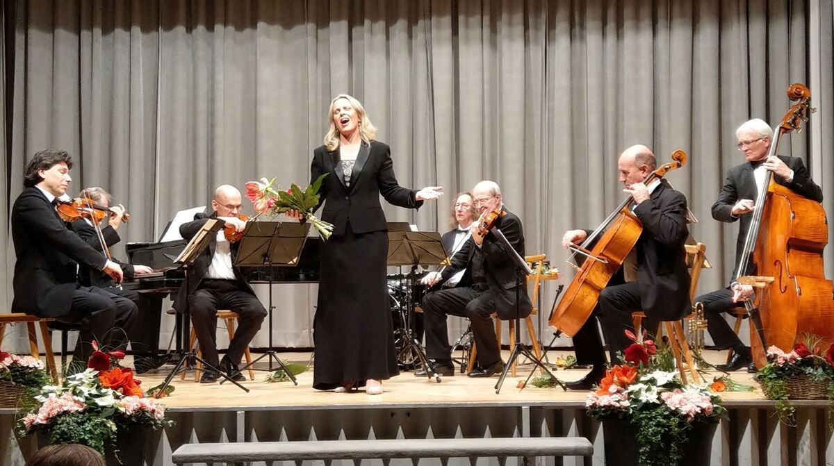 Das Johann Strauss Festival Orchester unter der Leitung von Konzertmeister René Kubelik (links). Die Sopranistin Jacqueline Noparstak begeisterte mit ihrer klaren Stimme. FOTO: BÖHM