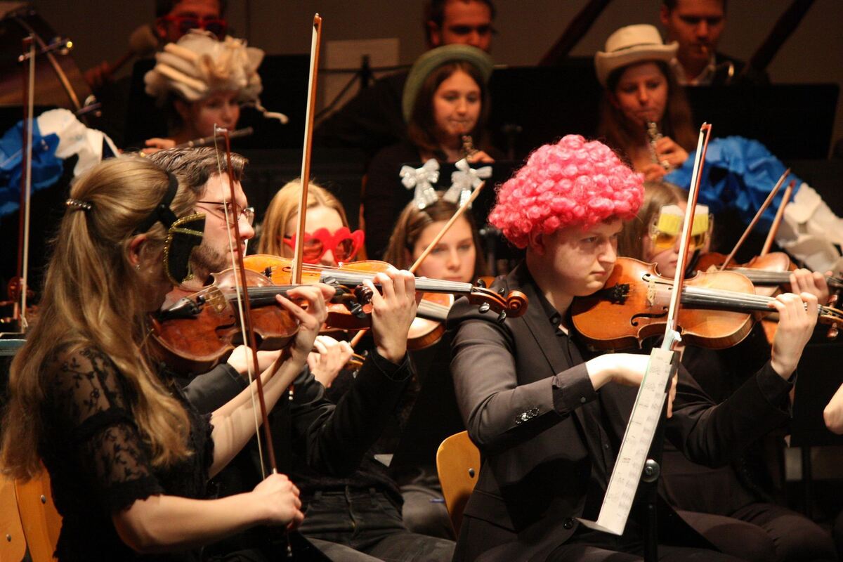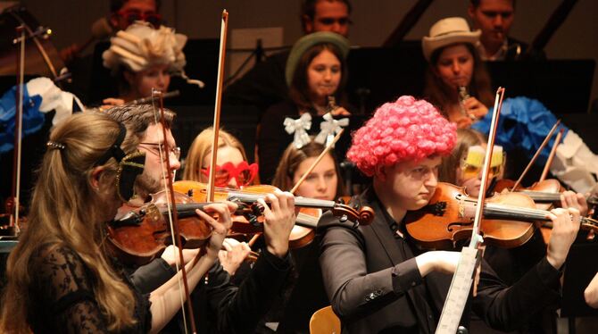 So bunt kostümiert hat die von der Gesellschaft der Musikfreunde geförderte Junge Sinfonie Reutlingen im Silvesterkonzert 2017 das vergangene Jahr verabschiedet. FOTO: STRÖHLE