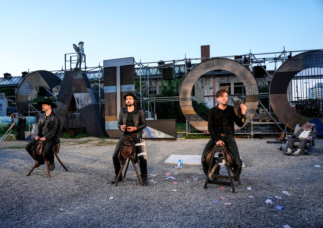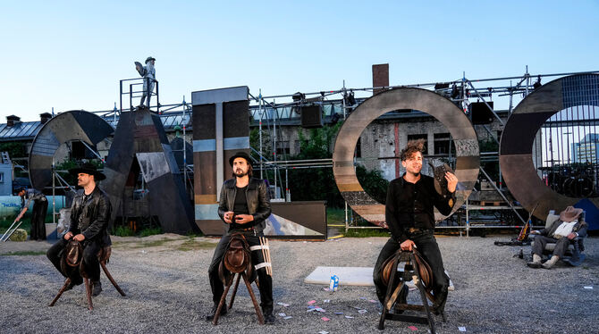 Was also tun, wenn es einen triezt, unbedingt doch den Western auf die Bühne zu zwingen? Es bleibt nur die Flucht in den Schwank, das Lustspiel, die Parodie: Trashig-unernstes Sommertheater also – warum nicht?