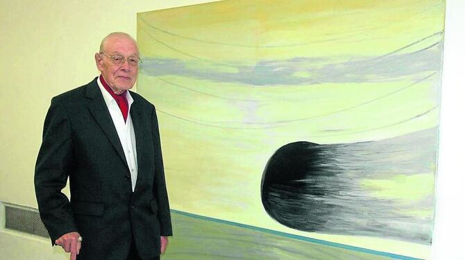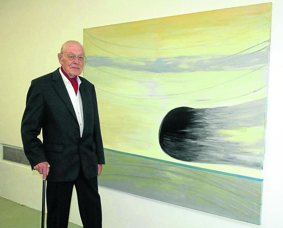 Winand Victor im Jahr 2005 vor seinem Bild »Lichtflug VII« in einer Ausstellung der Galerie Geiselhart.