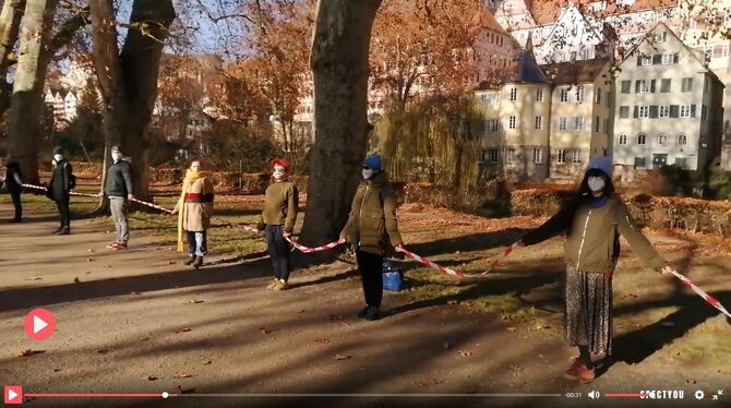 Das LTT initiierte eine kontaktlose Menschenkette auf der Tübinger Neckarinsel und stellte ein Video davon ins Netz. FOTO: SCREENSHOT/SPECTYOU/LTT