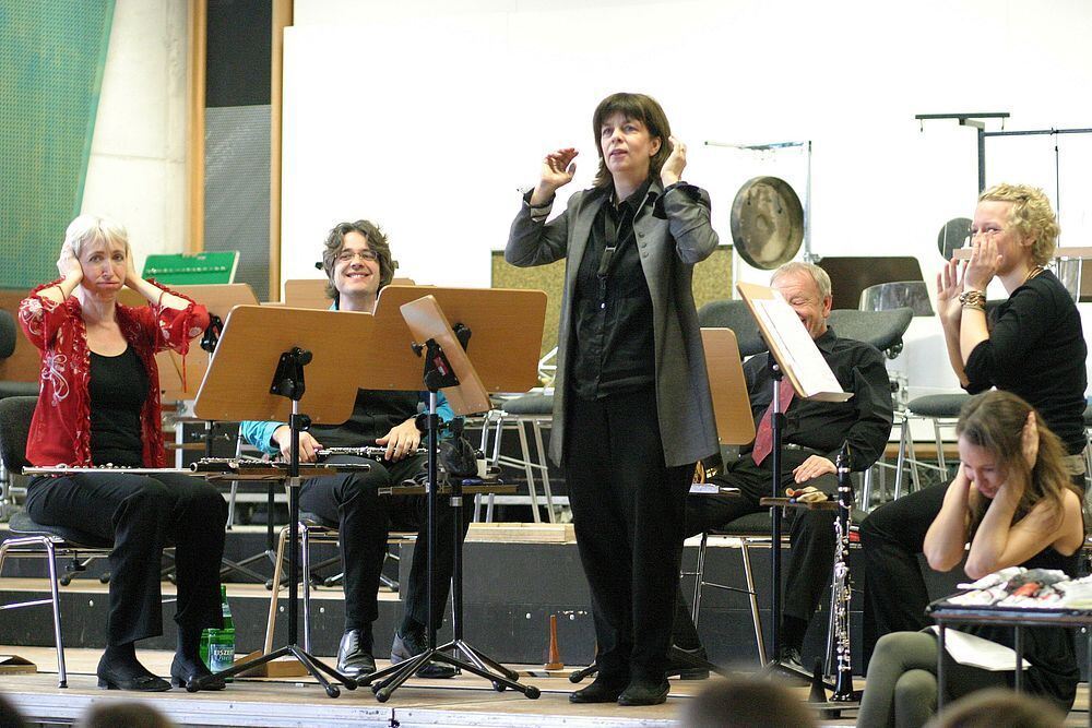 Irene de Marco (stehend) und weitere Blasmusiker der Württembergischen Philharmonie beim »Karneval der Tiere«.