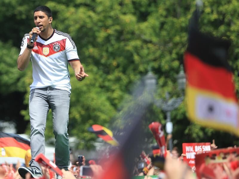 Andreas Bourani beim Empfang der Fußball-Nationalmannschaft in Berlin. Foto: Jens Wolf