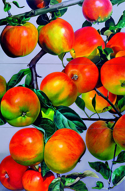 Karin Kneffel: »Äpfel« (2002) Ölgemälde auf Leinwand, 540 x 360 Zentimeter, aus der Ausstellung »Natur«. FOTO: ALTANA KUNSTSAMMLUNG/VG BILD-KUNST, BONN