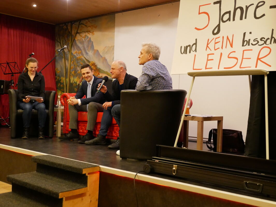 Anna Armbruster (links), Dr. Max Menton, Thomas Poreski und Richard Stasch diskutierten am Freitagabend im Wirtshaus unterm Wasserturm bei Häslach über Lärmschutz an der B27.