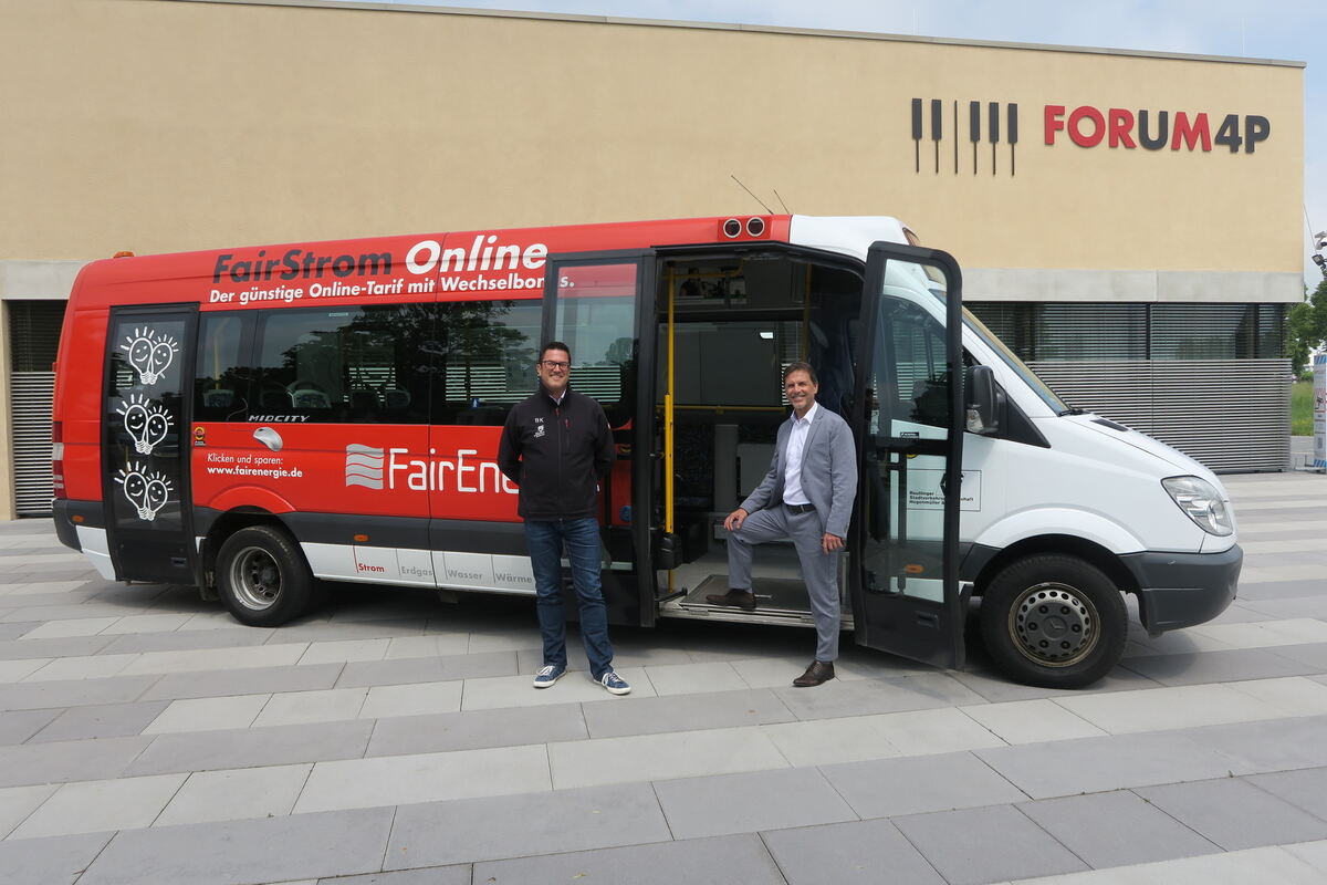 Im Sommer 2021 zeigten Bernd Kugel vom RSV (links) und Pliezhausens Bürgermeister Christof Dold den neuen E-Bus des Ortsbusses.