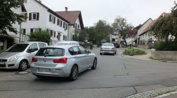 Als provisorische Verkehrsachse mitten durch Pliezhausen dient gerade die enge Bachenbergstraße, die beileibe nicht nur von Ortsansässigen als Umfahrung der Baustelle in der Bachstraße gerne benutzt wird. FOTO: KELLER