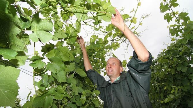 Martin Koch inmitten der Reben auf dem Metzinger Weinberg