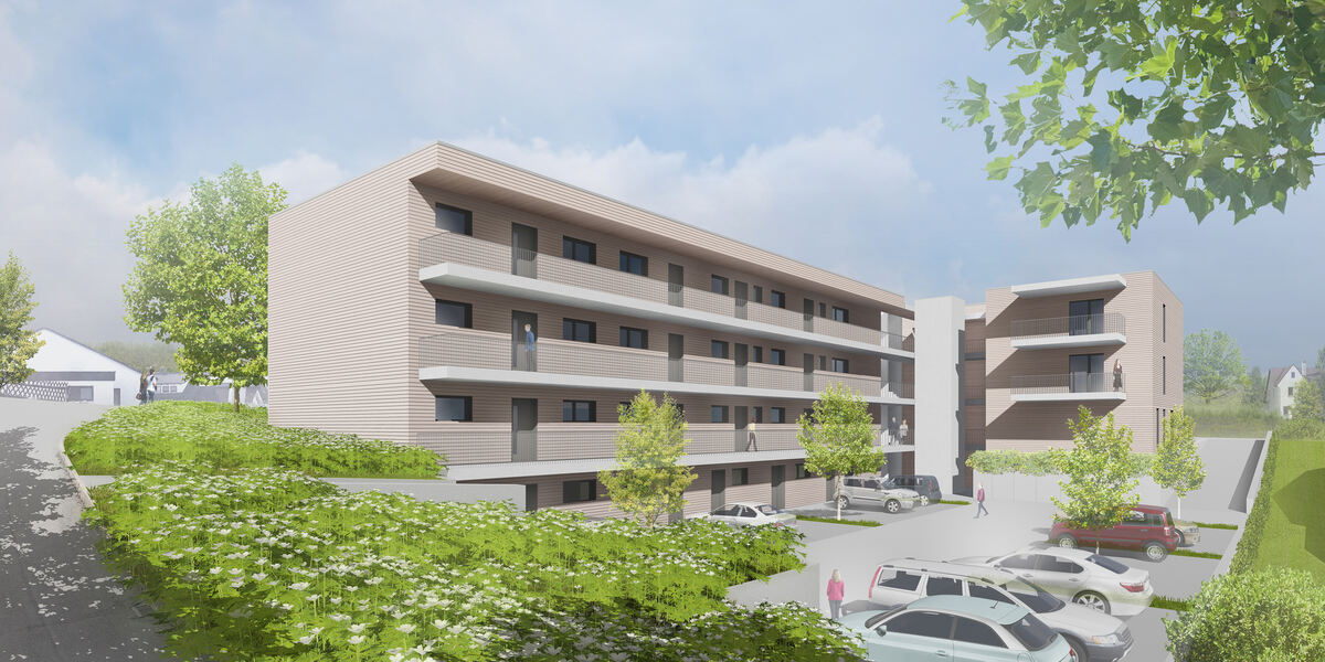 In dieser Computeranimation werden Lage, Größe und Höhe der geplanten Wohnanlage deutlich. VISUALISIERUNG: BAUGENOSSENSCHAFT PFULLIGEN