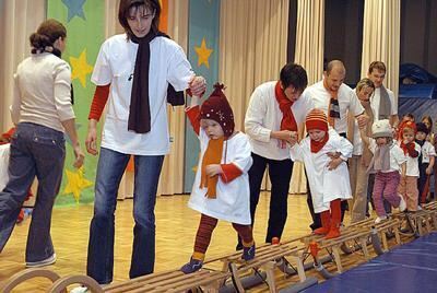 Balancierübung bei der Jahresfeier des TV Häslach: Es müssen nicht immer Baumstämme sein.