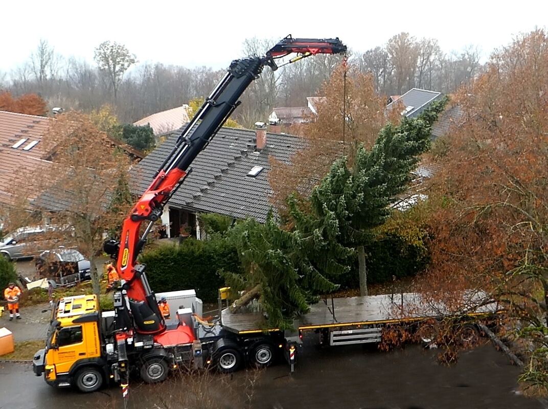 13 Meter hohe Fichte von Pliezhausen nach Gniebel umgezogen