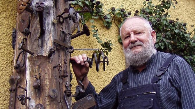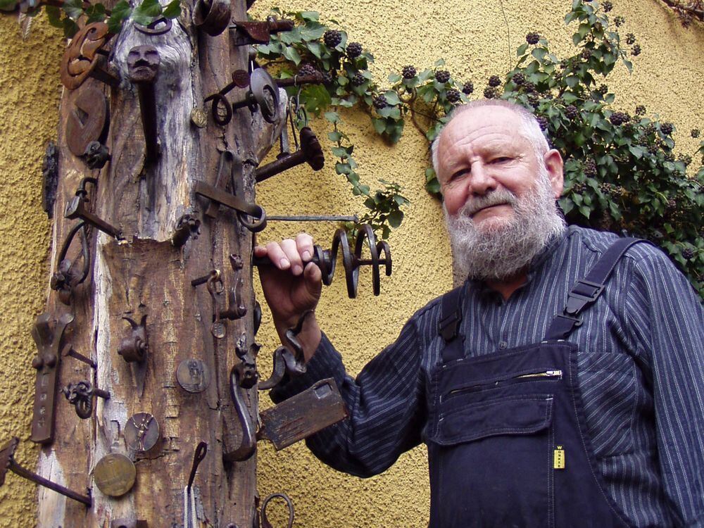 Der Nagelbaum am Eingang zum Wohnhaus symbolisiert Offenheit und Internationalität des Hauses Zimmermann in der Kronengasse in Pliezhausen. Ob Lehrling oder Praktikant: Wer immer im Kunstschmiede-Atelier von Paul Zimmermann mitarbeitete, dem war aufgegeben, als künstlerisches Zeugnis einen Nagel zu schmieden.