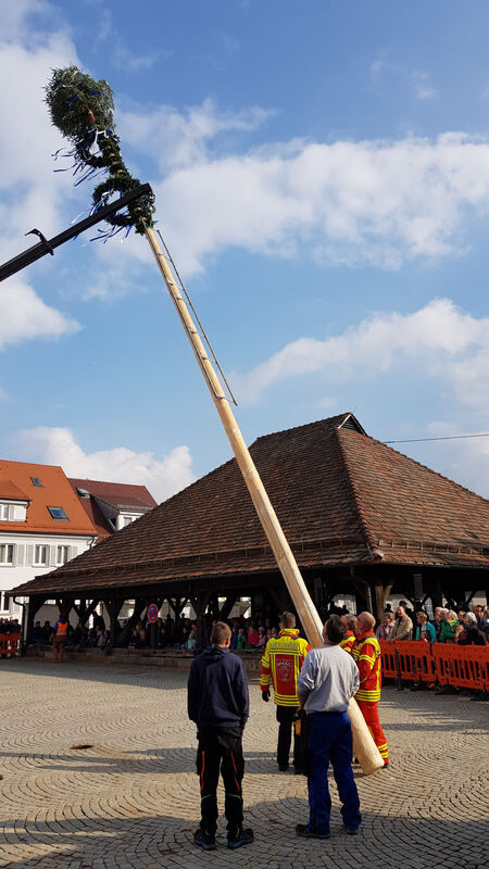 Ziel ist die »maximal mögliche Sicherheit beim Aufstellen des Maibaums für Ausführende und Besucher«, wie es in der Sitzungsvorlage heißt. Die Verwaltung freut sich nicht nur über den alten Brauch, sondern macht sich auch Gedanken über etliche Unfälle, teilweise mit tödlichem Ausgang. Künftig wird das Traditions-Stück liegend in den Maibaumständer »Herkules« eingespannt und dann sicher hochgezogen. Das Stahlbeton-Fertigteil ist tief im Boden verankert und außerhalb der Nutzung nicht sichtbar. Festgespannt werden können übrigens auch Weihnachtsbäume.