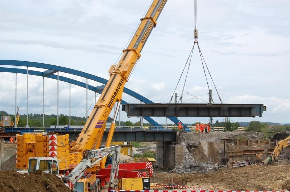 55 Tonnen am Haken: alte Bahnbrücke abgerissen
