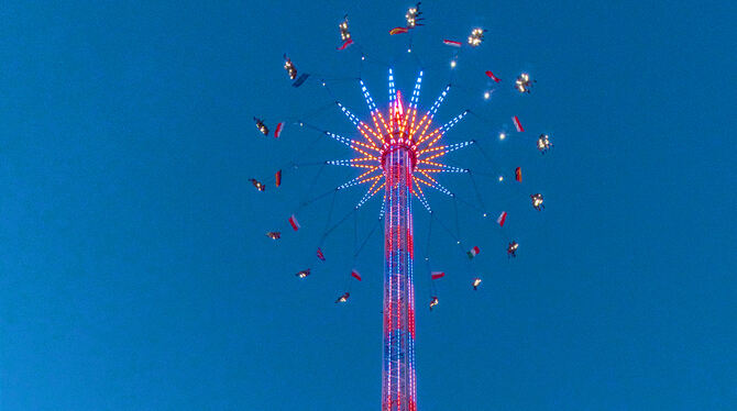 METZINGEN. Im vergangenen Spätsommer stand ein Riesenrad in der Outletcity Metzingen - »das wurde sehr gut angenommen, wir haben sehr positive Rückmeldungen bekommen«, sagt Tamara Link, Pressesprecherin der Holy AG. Nun legt die Holy AG noch eine Schippe drauf: Das nach Angaben der Besitzer »größte mobile Kettenkarussell weltweit« kommt nach Metzingen, es hat eine Höhe von 80 Metern. Auch die Drehgeschwindigkeit des Kettenkarussells ist mit 70 Stundenkilometern enorm. Zum Vergleich: Der Turm der Reutlinger Marienkirche ist 71 Meter hoch, die oberste Wohnung im Hochhaus Stuttgarter Tor liegt auf rund 65 Metern Höhe.