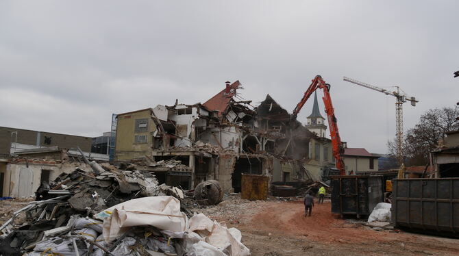 METZINGEN. Eines der ältesten Unternehmen in Metzingen war die Enzian-Seifenfabrik G.A. Bazlen. Gegründet 1857, zog sie in den 1870er-Jahren von ihrem Urstandort am Rathausplatz, im Haus des heutigen Bäcker-Café Mayer, an die Ulmer Straße und erweiterte im 20. Jahrhundert um einen Standort in der Römerstraße. Doch Ende 2016 gab Bazlen die Produktion auf. Bald ist sie auch optisch Geschichte, denn fast alle Fabrikgebäude fallen. Das markante grün verputzte Werk 1 nah am Lindenplatz, das Anfang des 20. Jahrhunderts gebaut wurde, wird derzeit abgebrochen.