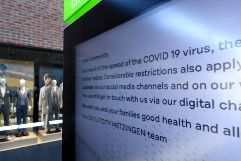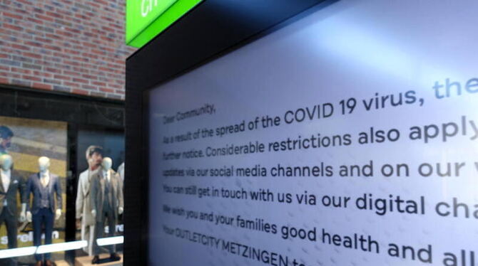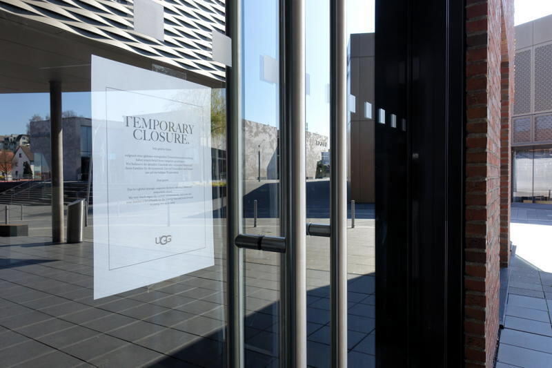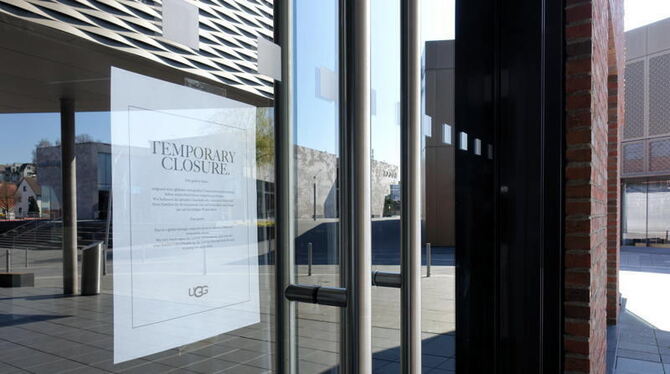 METZINGEN. »Temporary Closure« steht auf einem Zettel, der hinter der Glastüre eines Shops in der Outletcity hängt. Vorübergehend geschlossen trotz verlockender Angebote. »50 % on selected items«, verspricht ein Laden, »70 % auf ausgewählte Styles« der nächste, doch tatsächlich ist hier alles hundertprozentig geschlossen. Das ist an jedem Sonntag so gewesen, besonders ist an diesem Spaziergang, dass er wie ein Blick in die nähere Zukunft ist. Die Besucherinformation verkündet in Deutsch und Englisch: »In Folge der Ausbreitung des Covid-19-Virus haben Bundes- und Landesregierungen entschieden, dass Verkaufsstellen des Einzelhandels und Outlets geschlossen werden. Aus diesem Grunde stellen die Marken der Outletcity Metzingen ihren Geschäftsbetrieb vorübergehend ein«. Statt Sonderangeboten ein Schlag für Kundschaft, Handel und 2000 Mitarbeiter. Jedoch auch die Gelegenheit, in aller Ruhe ganz alleine die kommerzielle Weltläufigkeit und architektonische Weitsicht zu besichtigen. Eine einsame Modenschau.