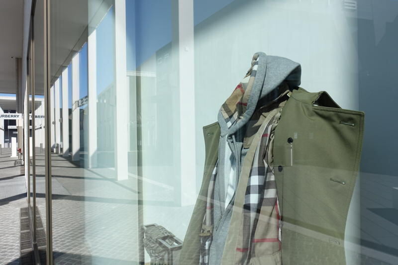 Im Outlet der italienischen Marke Armani läuft drinnen, aber von draußen gut sichtbar, ein Film wie eine Erinnerung an bessere Zeiten. Schöne schlanke Frauen und Männer laufen mit Taschen und Sonnenbrillen über den Laufsteg. Den Ton dazu liefert der im Wind rauschende Bambus auf dem menschenleeren Platz. Bei der amerikanischen Marke Polo Ralph Lauren steht der laut Preisschildchen »Mann 1« schick gekleidet neben Lederkoffern mit Messingbeschlägen, obschon momentan ja auch die USA strikte Reisebeschränkungen erlassen haben.