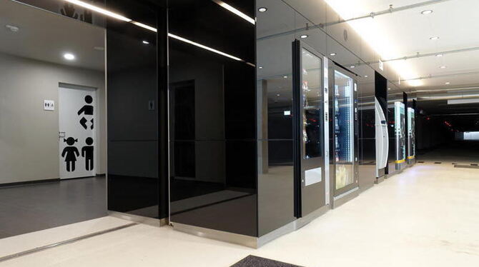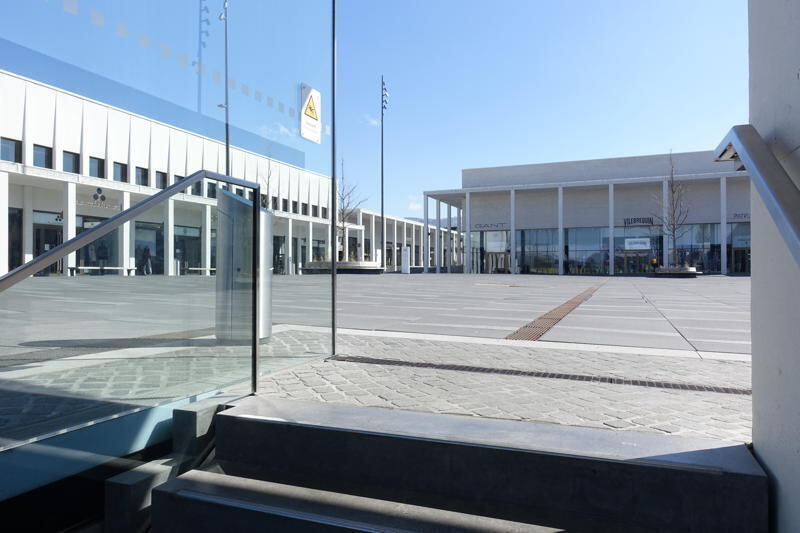 Die Weite der Alpenlandschaft am Bauzaun hinter den stehenden Buchstaben Outletcity passt ungewollt zur fast vollständigen Abwesenheit menschlicher Wesen. Selbst die Restaurants müssen geschlossen bleiben. Die Starbucks-Filiale serviert keinen Tropfen von irgendwas, bei Mövenpick tanzen statt Gästen nur Stühle auf den Tischen. Zumindest unter der Woche geöffnet hat die Bäckerei Keim. Erleichtert mögen bedürftige Besucher feststellen, dass die modernen Toiletten der Parkhäuser ebenfalls zugänglich sind. Es wäre auch möglich, sich dort aus den Snackautomaten Knabberriegel oder Erfrischungsgetränke zu holen, um wenigstens einen süßen Geschmack im Mund zu haben.