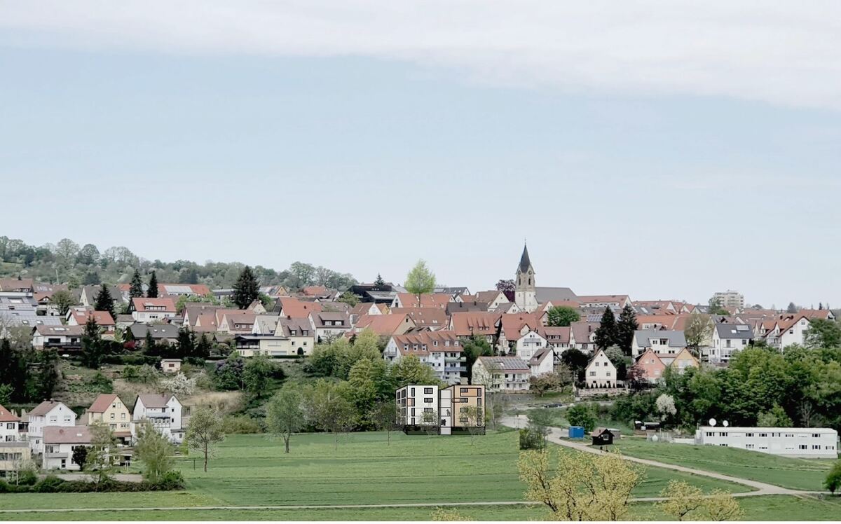 Auf dem Areal der früheren Gärtnerei zeigt diese Visualisierung des Architekturbüros, wie sich das Haus für Flüchtlinge in das Ortsbild einfügt.